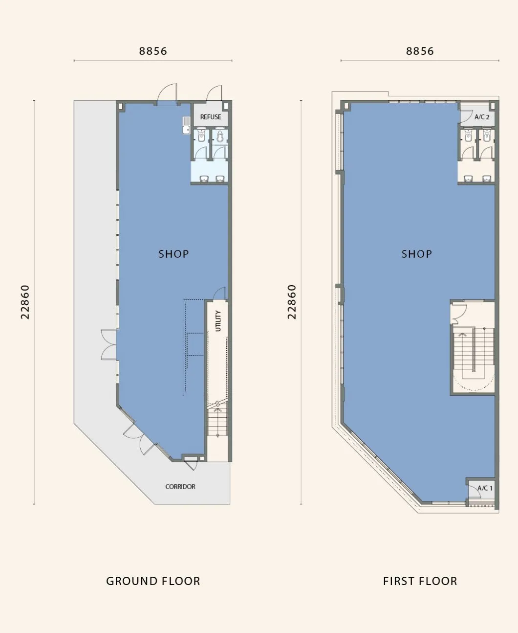 Wide built-up areas with 20′ ultra-high ceiling on the ground floor allows the opportunity to incorporate a mezzanine floor, while the first floor presents a generous ceiling height allowing for the flexibility of your interior design desires.
